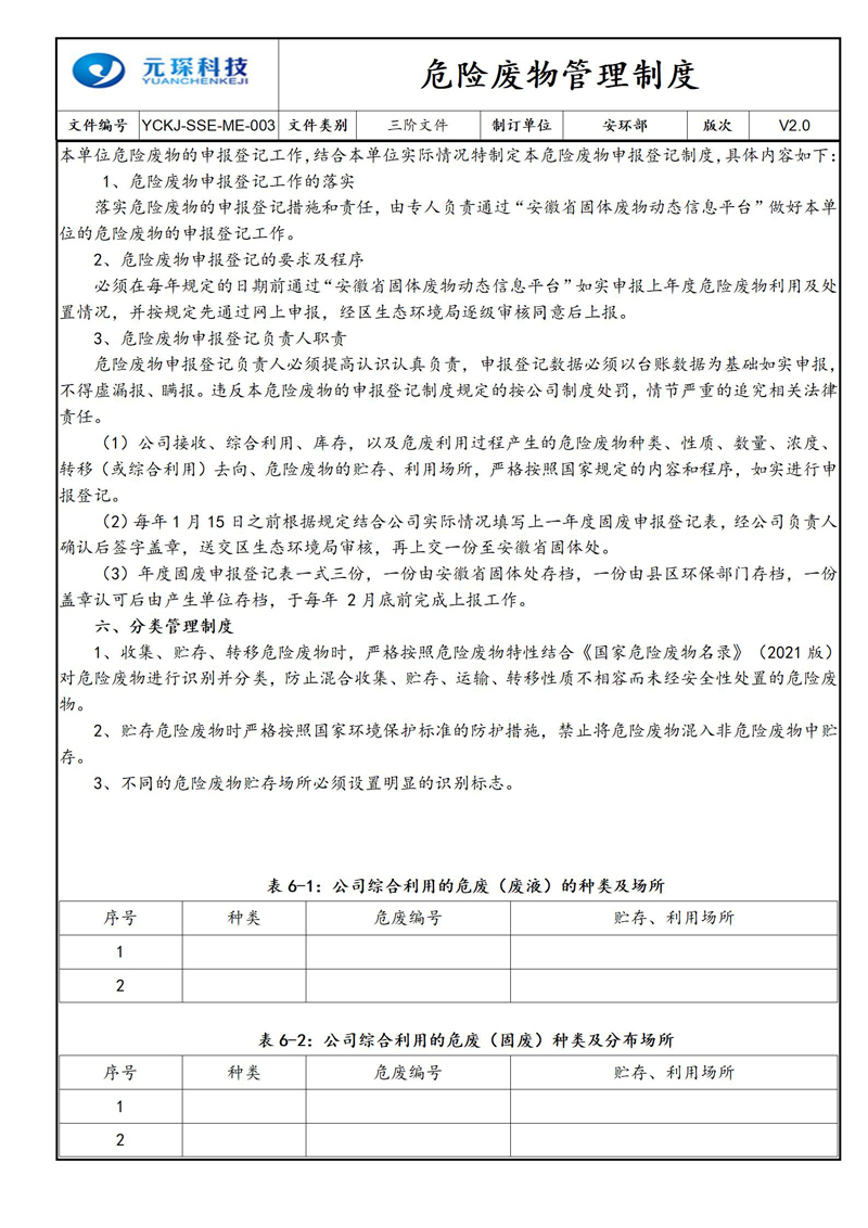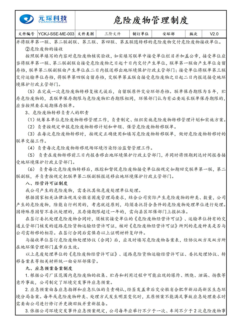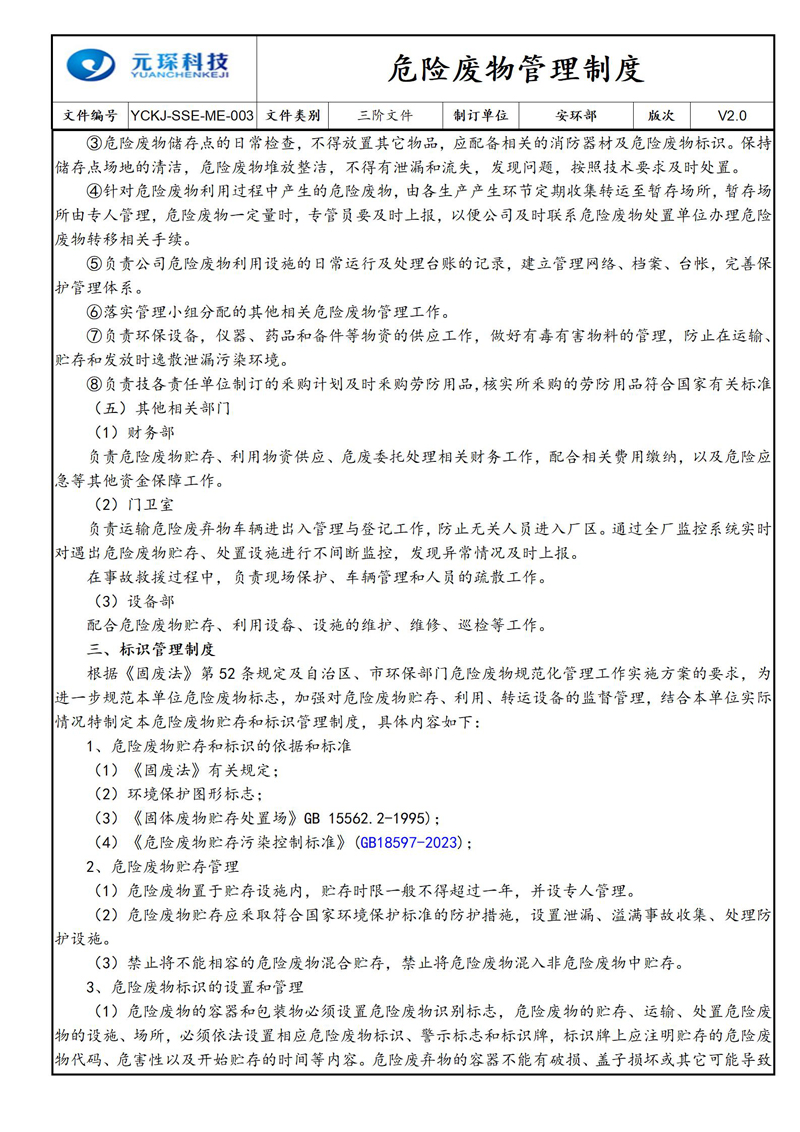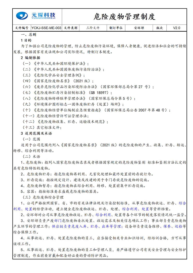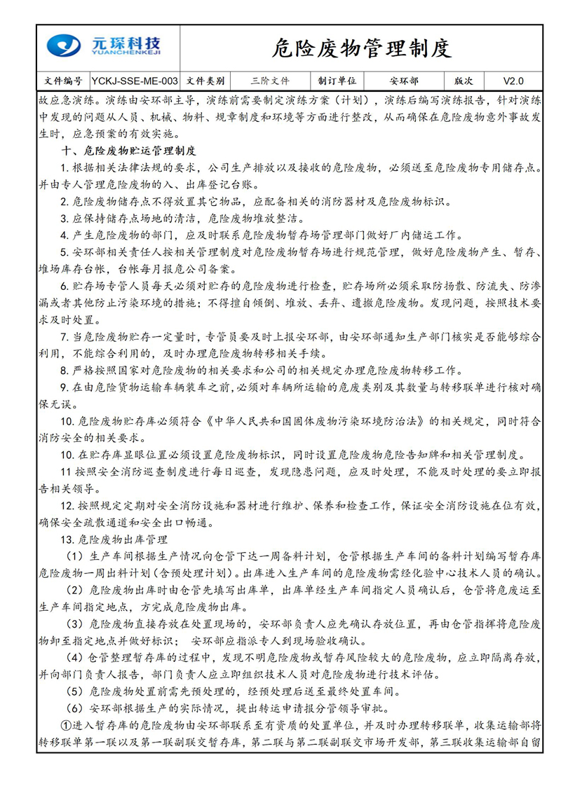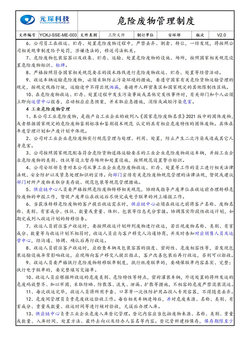 危险废物管理制度