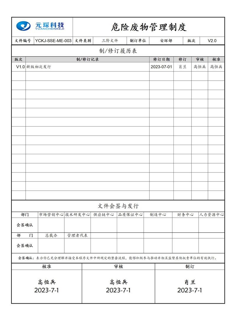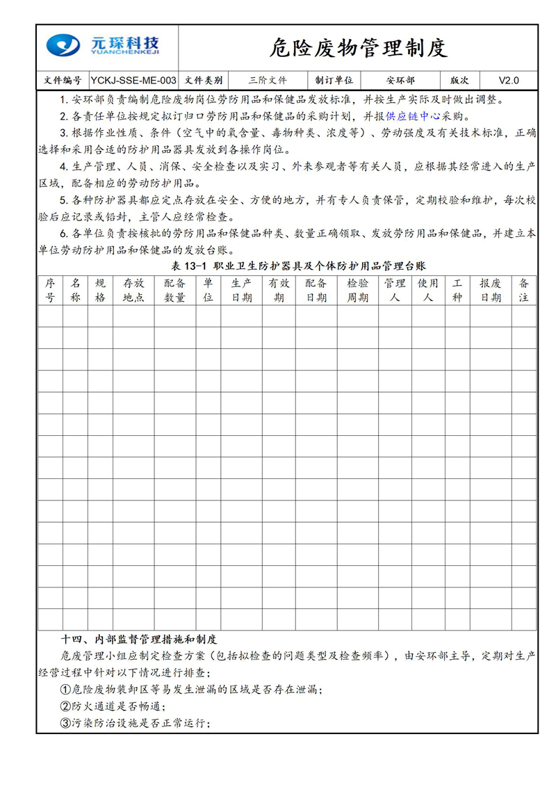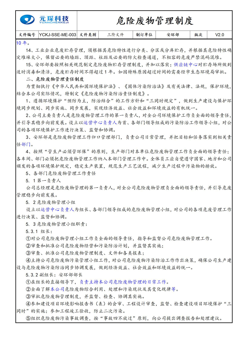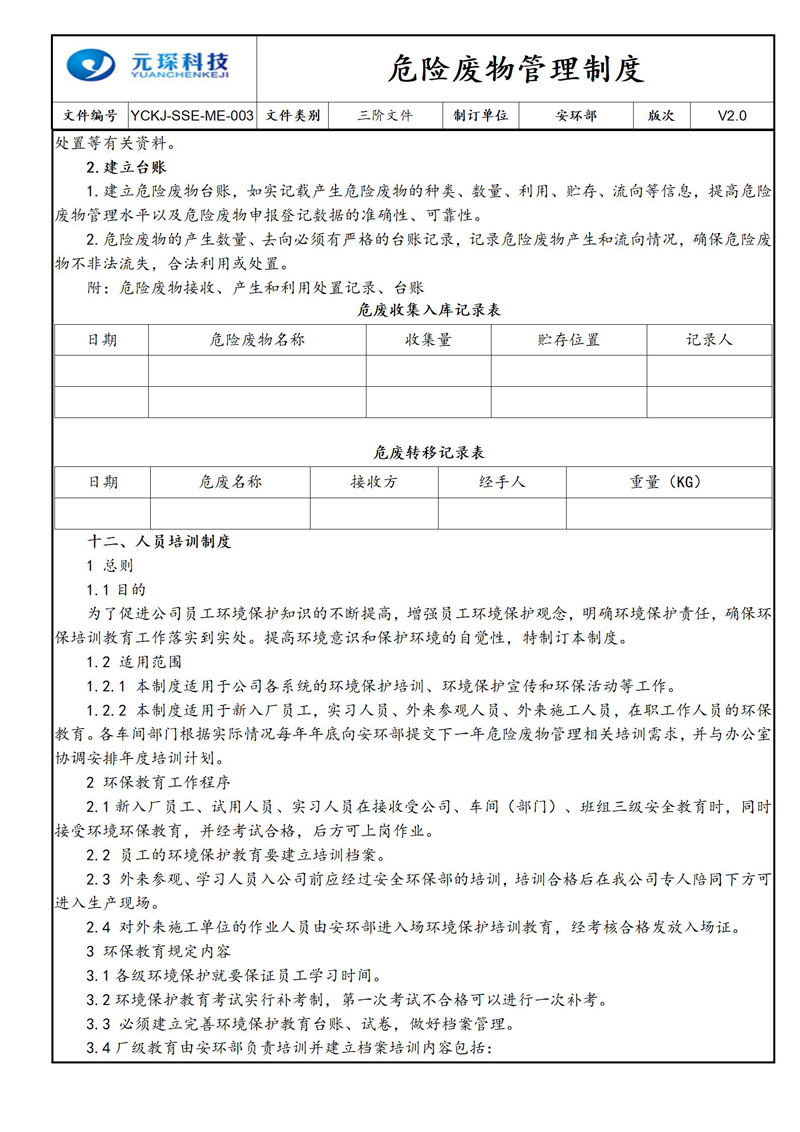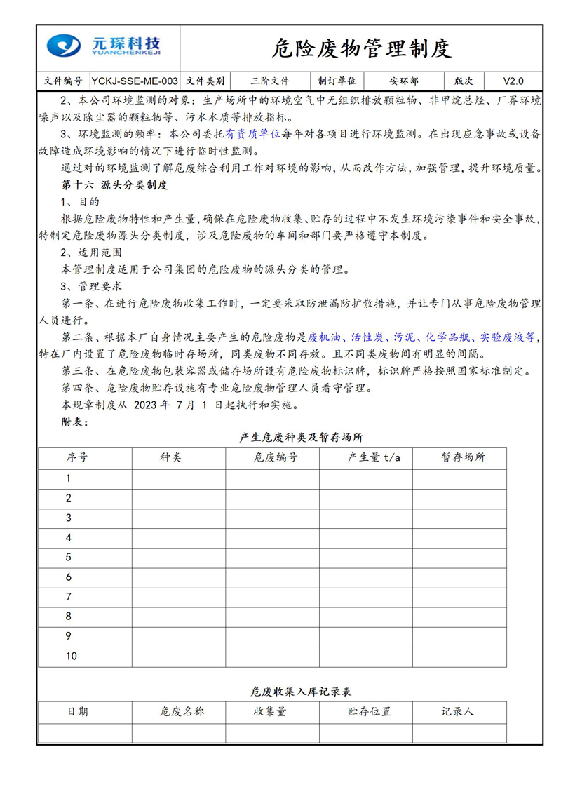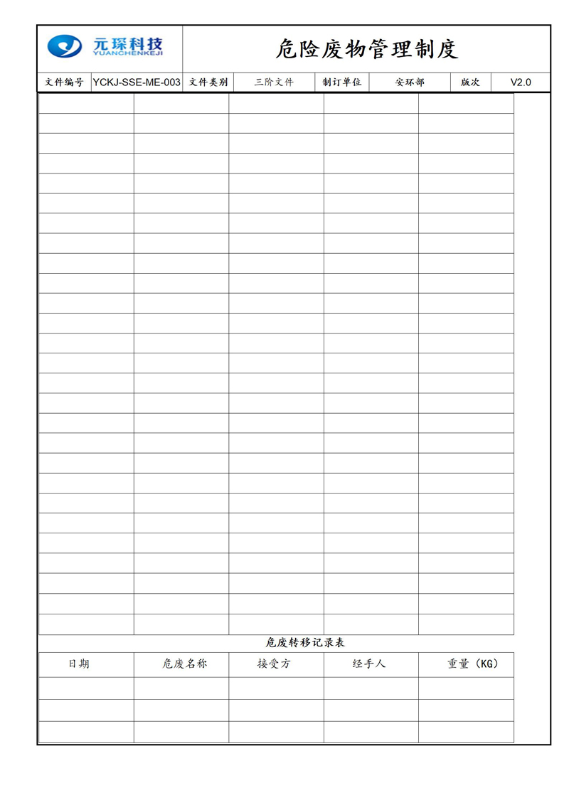 危险废物管理制度