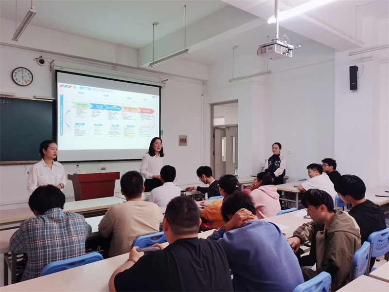 为帮助学生尽早厘清自我发展方向,第一期课程以HR进课堂的形式,由球速体育科技人力资源中心总监张利利,人才发展经理夏徽云担任讲师,将“球速体育班”开班宣讲与《大学生职业生涯规划》课程巧妙融合起来,为学生们开展全面且细致的学业与职业规划指导。