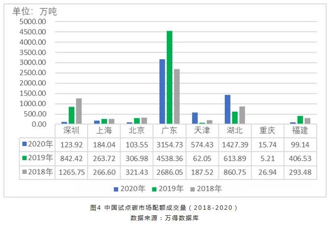 中国试点碳市场从2013年相继启动交易以来,根据当地节能减排实际情况,对碳交易机制进行个性化探索,在交易机制设置、配额分配方法、CCER抵消机制、系统运行设置、对外交流合作等方面积累地方经验,供全国碳市场参考。其中,广东碳市场交易活跃,机构投资者表现抢眼,且广东碳市场针对不同行业进行不同比例的配额有偿分配尝试,2020年度广东碳市场电力企业免费配额比例为95%,钢铁、石化、水泥、造纸企业的免费配额比例为97%,而航空企业则100%免费分配,探索在同一碳市场下对不同行业的节能减排力度进行调整,以更好发挥碳市场推动行业低碳转型目标达成的作用。