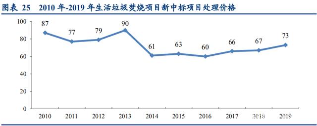 从上图可以看出,2016 年之后,垃圾焚烧项目新中标项目处理价格逐步回升,低价中标情况逐步减少,球速体育认为原因主要是: