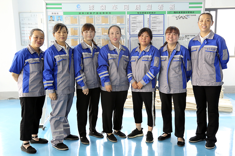 2020年3月份,滤袋车间新增了一条褶皱滤袋生产线。调试过程中,有人说褶皱滤袋不好做,不愿意去学习。这时,车间主任来到李婷婷旁边说:“你去,跟着师傅学”。沉默片刻,李婷婷坚定的回答说“好”!