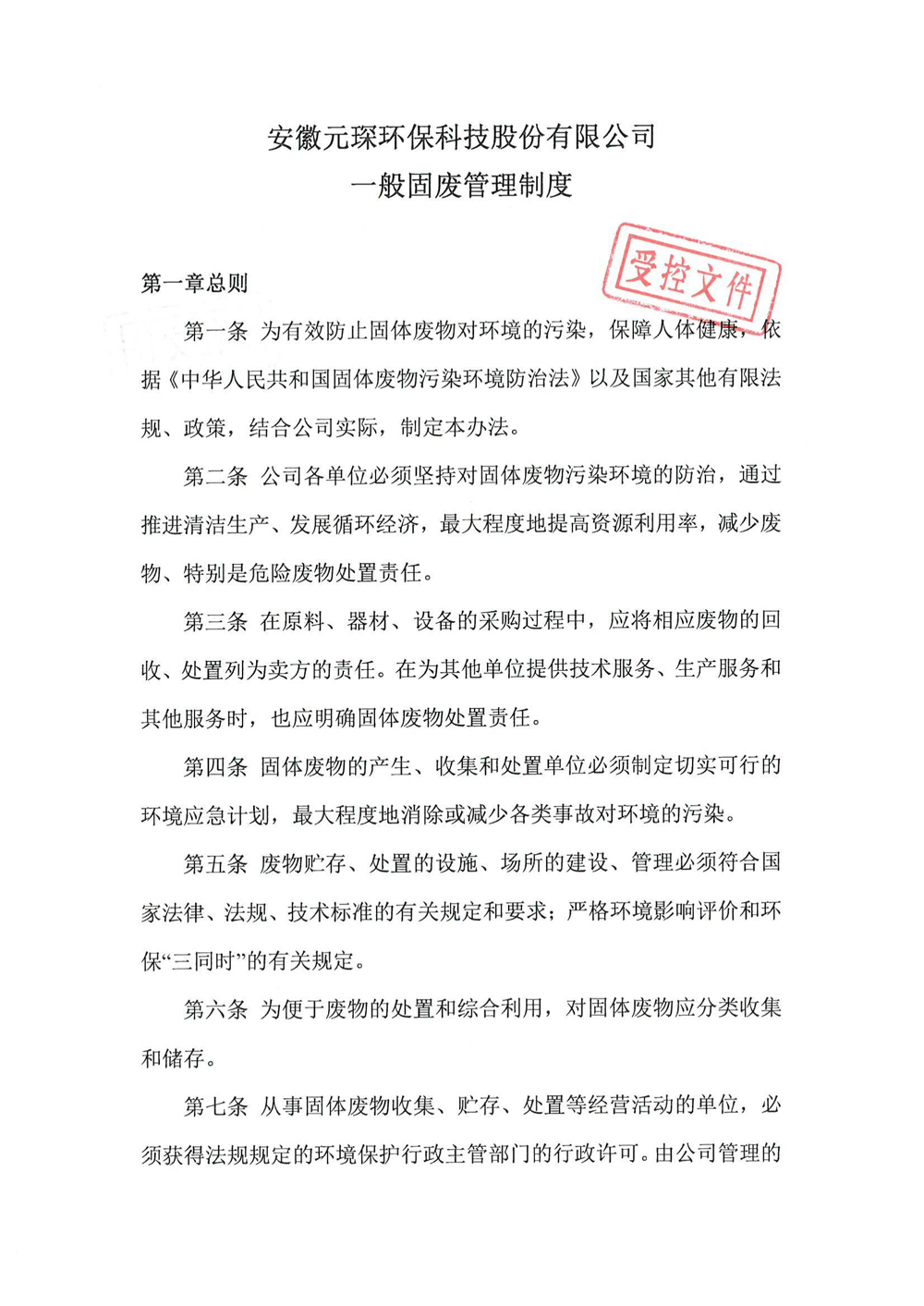 安徽球速体育环保科技股份有限公司一般固废管理制度