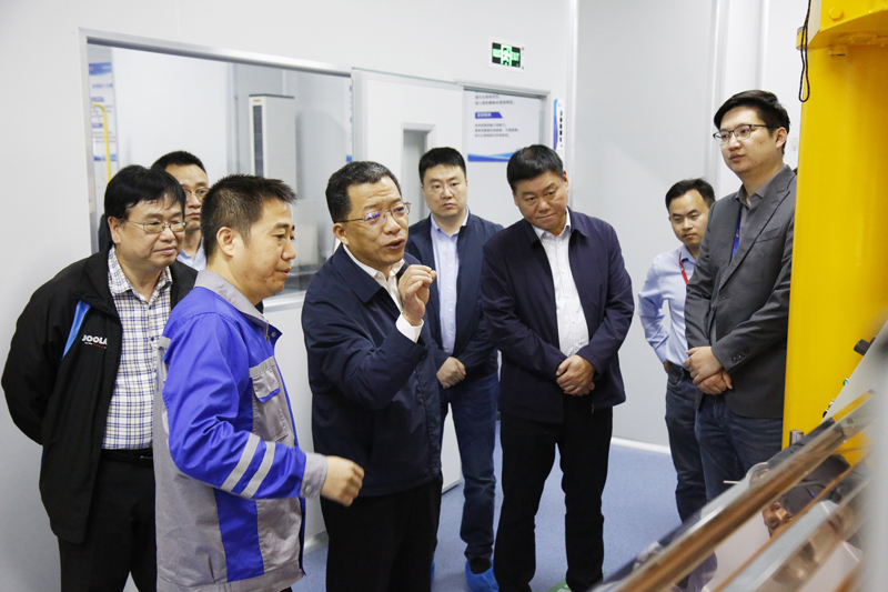 在参观过程中,铜陵市委书记丁纯对球速体育科技的高端滤料生产线及新项目材料生产给予了高度评价。他强调新材料产业的重要性,特别是环保新材料和新能源材料的双轮驱动,对改善环境和推动“双碳”目标实现具有重要意义。