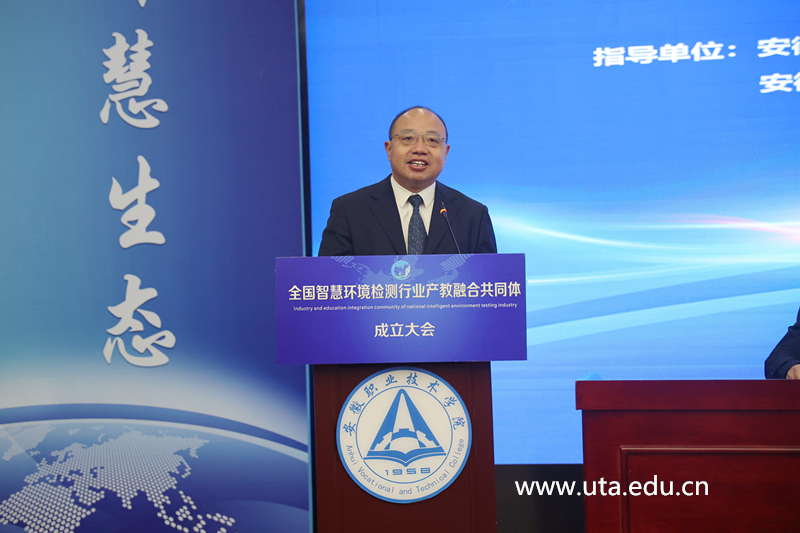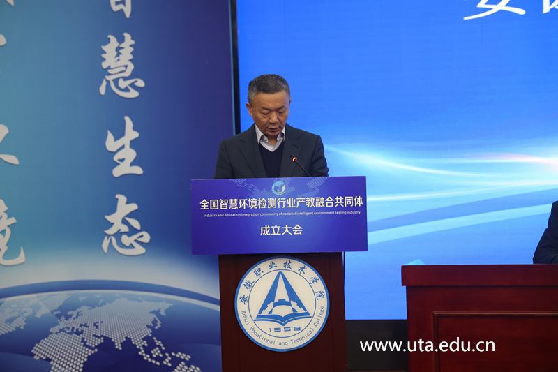 为深入贯彻党的二十大精神,落实中共中央办公厅、国务院办公厅《关于深化现代职业教育体系建设改革的意见》文件精神,11月25日,由安徽球速体育环保科技股份有限公司、安徽环境科技集团股份有限公司、合肥工业大学、安徽职业技术学院牵头,联合相关行业协会、组织、高等学校、科研机构及环保相关企业等百余家单位共同组建“全国智慧环境检测行业产教融合共同体”,共同体成立大会在安徽职业技术学院举行。