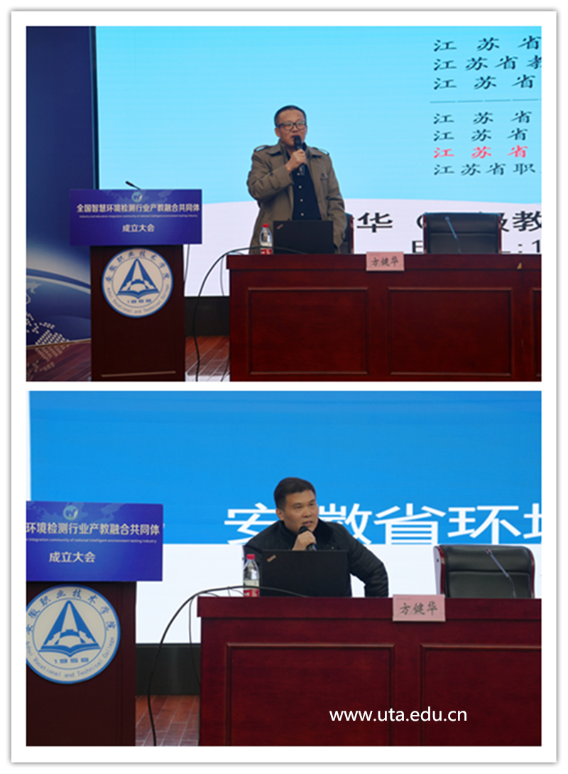 学院党委书记李方泽,安徽省教育厅一级主任科员任雯君,安徽球速体育环保科技股份有限公司董事长徐辉,安徽环境科技集团股份有限公司党委副书记总经理杨岸峰,合肥工业大学资源与环境学院党委书记南国君,安徽省环境检测行业协会专家委员会主任、中国科技大学教授刘桂建出席会议并致辞,成立大会由党委委员、副院长杨林国主持。