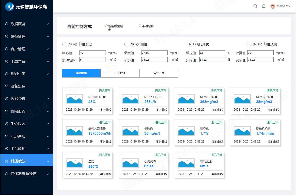 图3 球速体育AI能碳管理平台智能喷氨截图